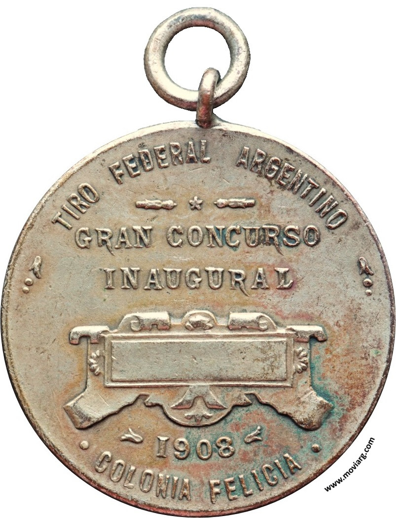 Colección @parryyanumismatico Anverso: PREMIO " S. RODRIGUEZ, ARTEAGABEITIA Y CIA " / BUENOS AIRES / AMBOS MUNDOS / MARCA REGISTRADA. Firma: BELLAGAMBA Y ROSSIReverso: TIRO FEDERAL ARGENTINO / GRAN CONCURSO / INAUGURAL / 1908 / COLONIA FELICIA Referencia: | |