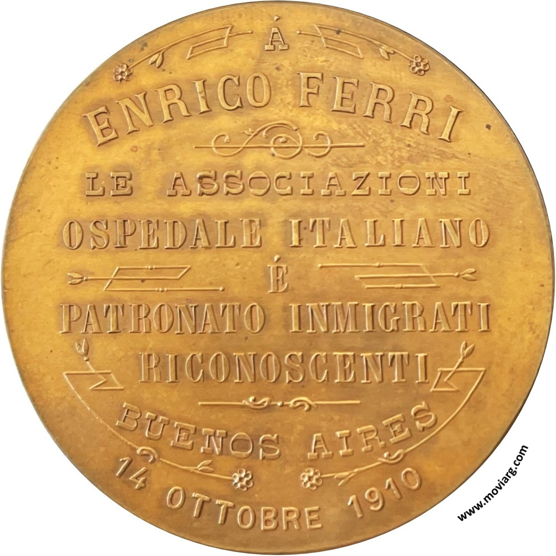 Anverso: Firma: (???) RODANTE (???) Reverso: Á / ENRICO FERRI / LE ASSOCIAZIONI / OSPEDALE ITALIANO / É / PATRONATO INMIGRATI / RICONOSCENTI / BUENOS AIRES / 14 OTTOBRE 1910 Referencia: | |