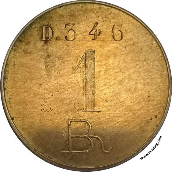 Anverso: D. [ 346 ] / 1 / B Reverso: OBRAJE "SAN JUAN" / DE / L. B. / VALE POR UN PESO CONTRA / MERCADERIAS / DESVIO KILOM. 141 Canto: Estriado Recto Referencia: | |