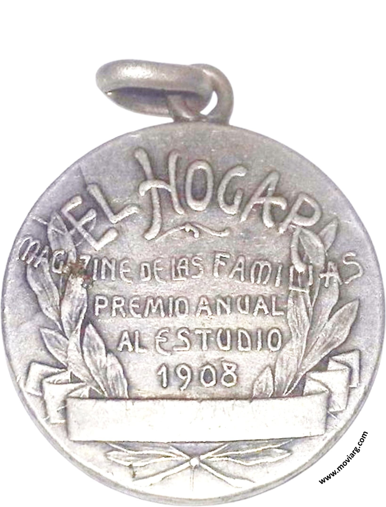 Anverso: EL QUE PERSEVERA VENCE Reverso: EL HOGAR / MAGAZINE DE LAS FAMILIAS / PREMIO ANUAL / AL ESTUDIO / 1908 Referencia: | |