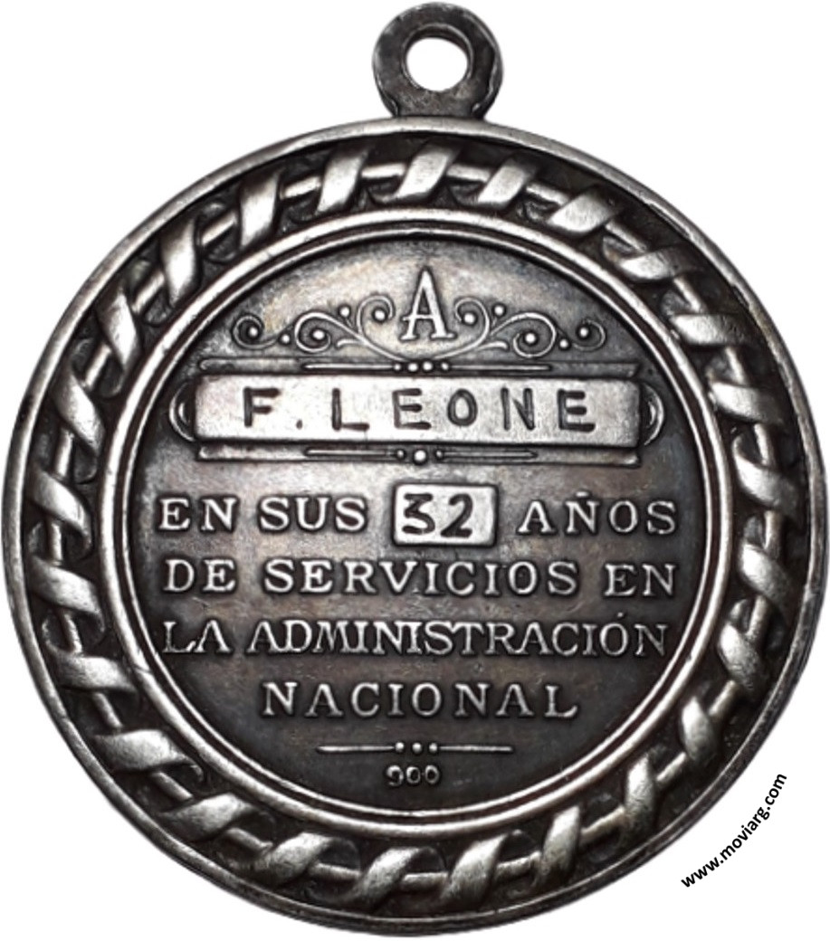 Colección MDS Anverso: MINISTERIO DE OBRAS PUBLICAS DE LA NACION / 1954. Campo: MOPReverso: A / [ F. LEONE ] / EN SUS [ 32 ] AÑOS / DE SERVICIOS EN / LA ADMINISTRACIÓN / NACIONAL / 900 Referencia: | |