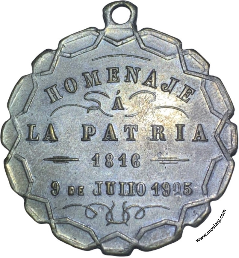 Colección Magnin Anverso: PATRIA. Firma: HORTA Y CA.Reverso: HOMENAJE / Á / LA PATRIA / 1816 / 9 DE JULIO 1905 Referencia: | |