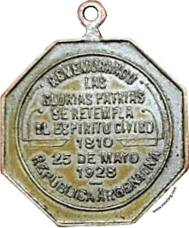 Anverso: Firma: CONSTANTE ROSSI Reverso: REMEMORANDO / LAS / GLORIAS PATRIAS / SE RETEMPLA / EL ESPIRITU CÍVICO / 1810 / 25 DE MAYO / 1928 / REPÚBLICA ARGENTINA Referencia: | |
