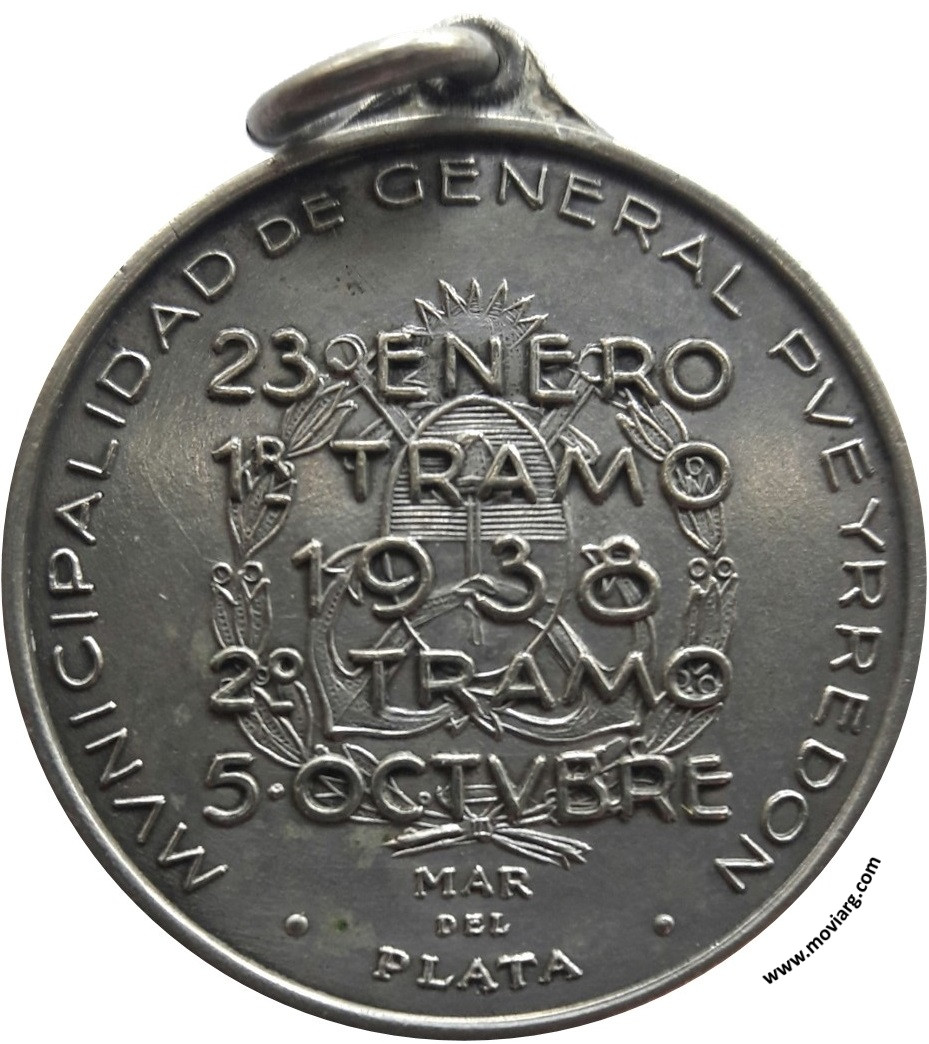 Anverso: INAUGURACION / CAMINO / BUENOS AIRES / A / MAR DEL PLATA. Firma: GOTTUZZO Y PIANA Reverso: MUNICIPALIDAD DE GENERAL PUEYRRERON / 23 ENERO / 1R. TRAMO / 1938 / 2° TRAMO / 5 OCTUBRE / MAR / DEL / PLATA Referencia: | |