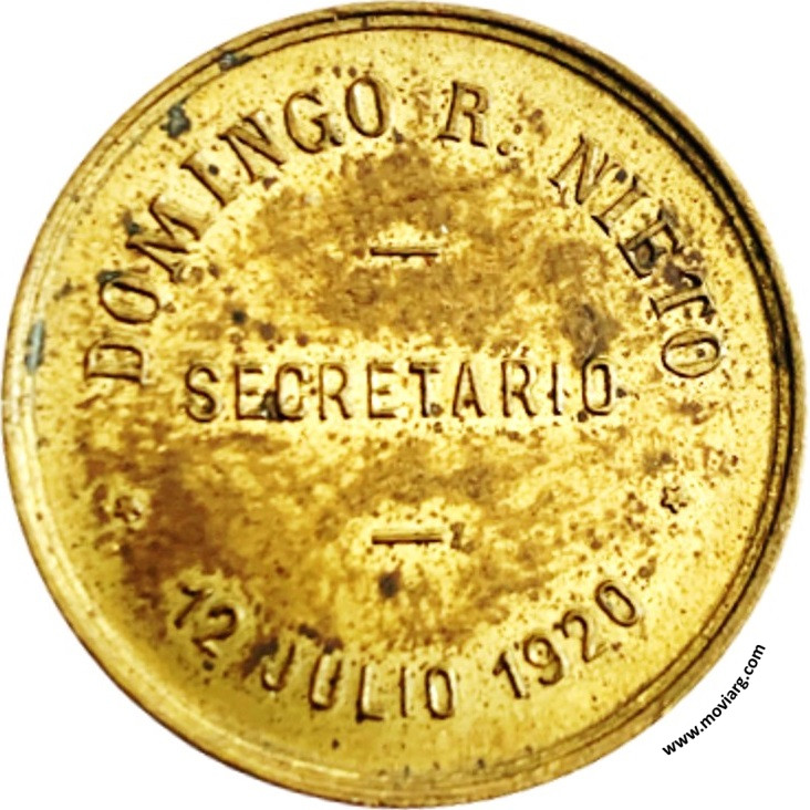 Colección Magnin Anverso: EXMO SUPERIOR TRIBUNAL DE JUSTICIA / LA RIOJA. Firma: CONSTANTE ROSSIReverso: DOMINGO R. NIETO / SECRETARIO / 12 JULIO 1920 Referencia: | |