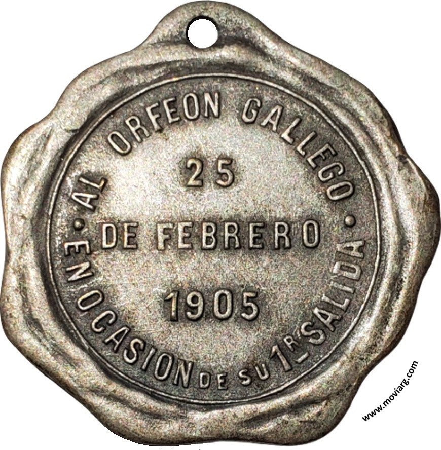 Anverso: ROMERIAS / ESPAÑOLAS / TRES / ARROYOS Reverso: AL ORFEON GALLERON / EN OCASION DE SU 1R. SALIDA / 25 / DE FEBRERO / 1905 Referencia: | |