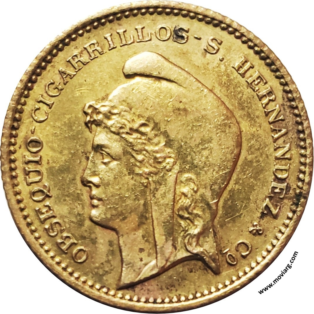 Anverso: OBSEQUIO - CIGARRILLOS - S. HERNANDEZ & CO. Reverso: AMOR EN EL SUENO - LA FLOR DE GUAYAQUIL Canto: Estriado recto Referencia: | |