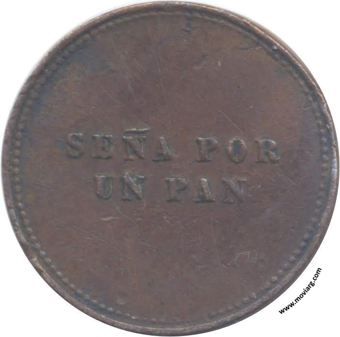 Anverso: MAQUINA ARGENTINA / PEDRO / BARGMANN / 1869 Reverso: SEÑA POR / UN PAN Referencia: | |