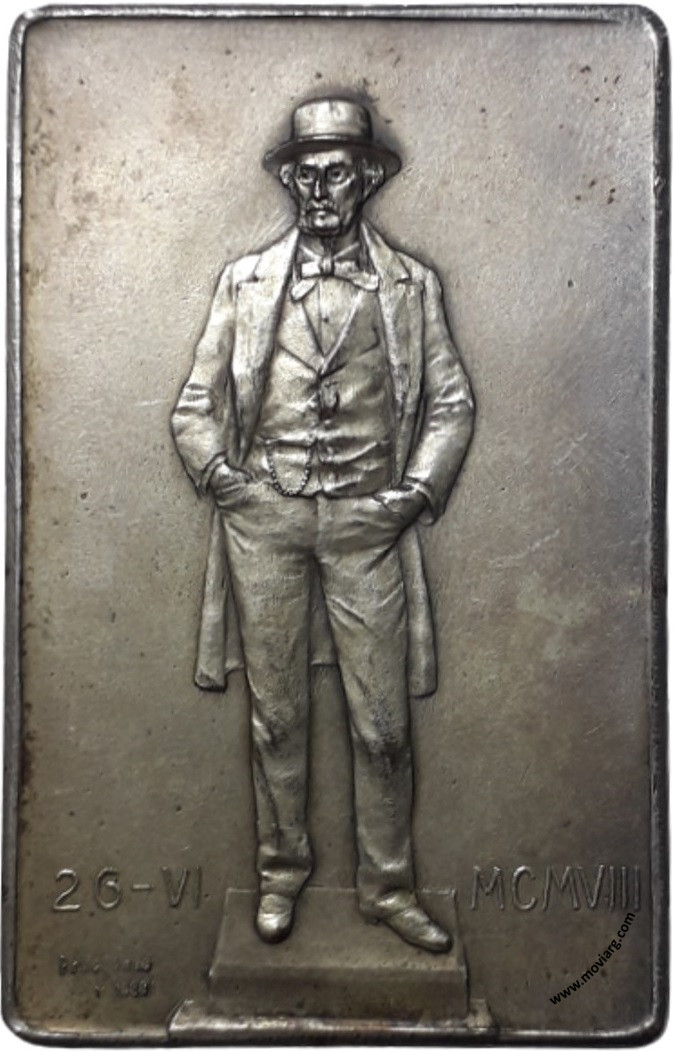 | Año: 1908 Obras y Servicios Públicos Metal: Plateado - Peso: 49.32gr - Módulo: 56.93x36.24mm - Espesor: 3.14mm - Rotación: 12hrs Grabador: José Bellagamba y Constante Rossi | |