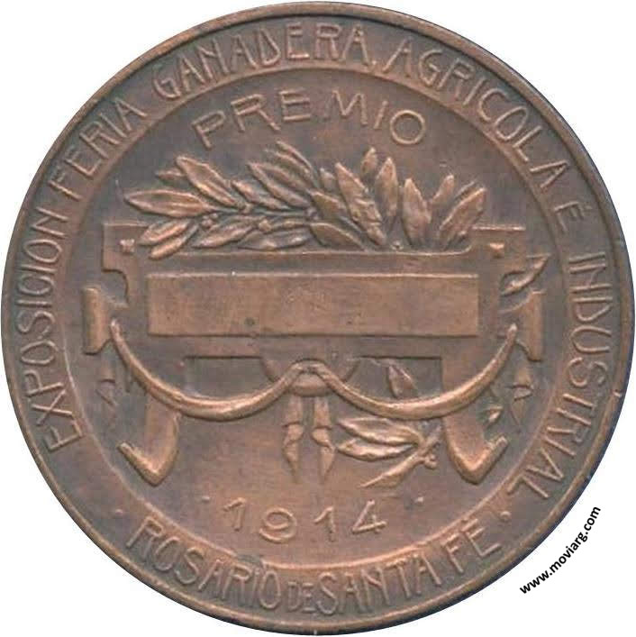 Anverso: SOCIEDAD RURAL DEL ROSARIO. Firma: C. Y AF. ROSSI Reverso: EXPOSICION FERIA GANADERA, AGRICOLA É INDUSTRIAL / ROSARIO DE SANTA FÉ / PREMIO / 1914 Referencia: | |
