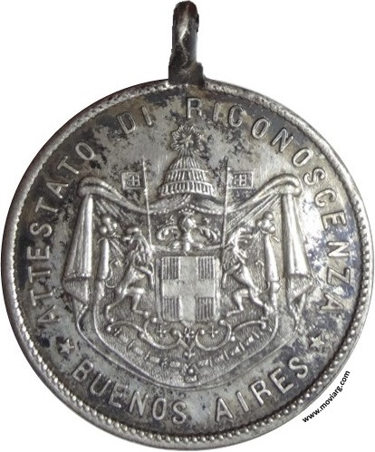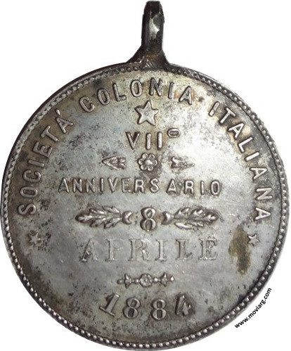 Anverso: ATTESTATO DI RICONOSCENZA / BUENOS AIRES Reverso: SOCIETÁ COLONIA ITALIANA / VII° / ANNIVERSARIO / 8 / APRILE / 1884 Referencia: | |