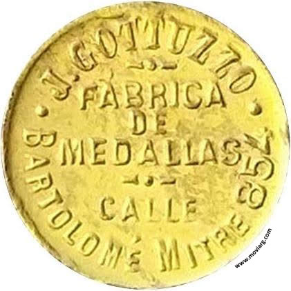 Anverso: Reverso: J. GOTTUZZO / FABRICA / DE / MEDALLAS / CALLE / BARTOLOME MITRE 854 Canto: Liso Referencia: ROSA-40 (M80) | |