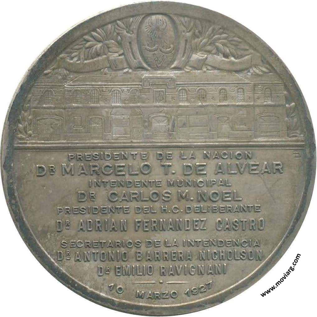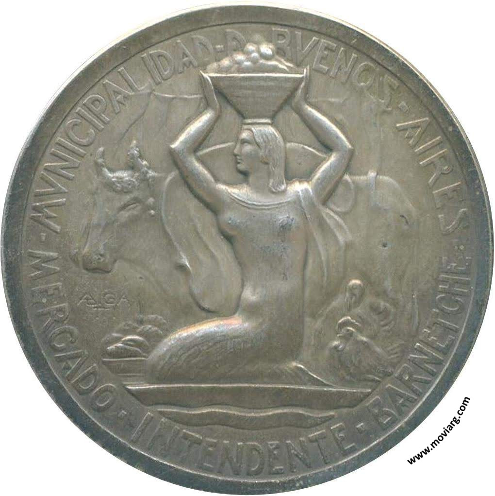 Anverso: MERCADO INTENDENTE BERNETCHE / MUNICIPALIDAD DE BUENOS AIRES. Firma: A. BIDOGLIA Reverso: PRESIDENTE DE LA NACION / DR. MARCELO T. DE ALVEAR / INTENDENTE MUNICIPAL / DR. CARLOS M. NOEL / PRESIDENTE DEL H. C. DELIBERANTE / DR. ADRIAN FERNANDEZ CASTRO / SECRETARIOS DE LA INTENDENCIA / DR. ANTONIO BARRERA NICHOLSON / DR. EMILIO RAVIGNANI / 10 MARZO 1927 Canto: Liso. PLATA Referencia: | |