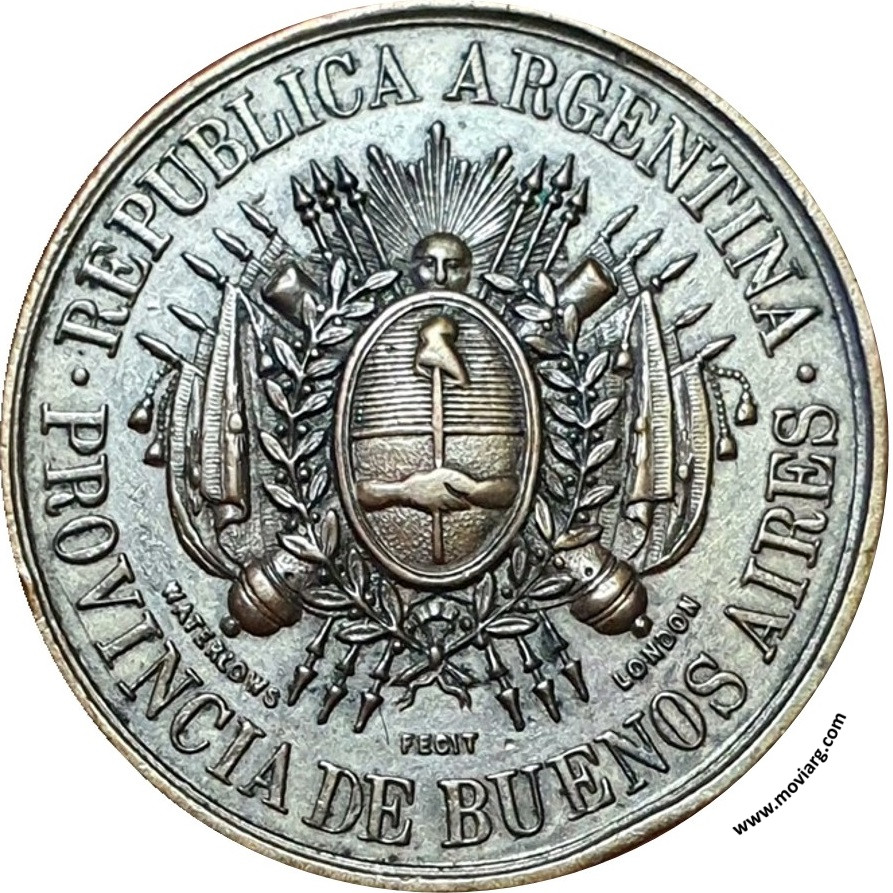 Colección Veltri Anverso: REPUBLICA ARGENTINA / PROVINCIA DE BUENOS AIRES. Firma: WATERLOWS FECIT LONDONReverso: FERRO-CARRIL DEL SUD / EN / CONMEMORACION / DE LA / APERTURA / AL PUEBLO / DEL AZUL / 1876 Referencia: ROSA-/76 | |