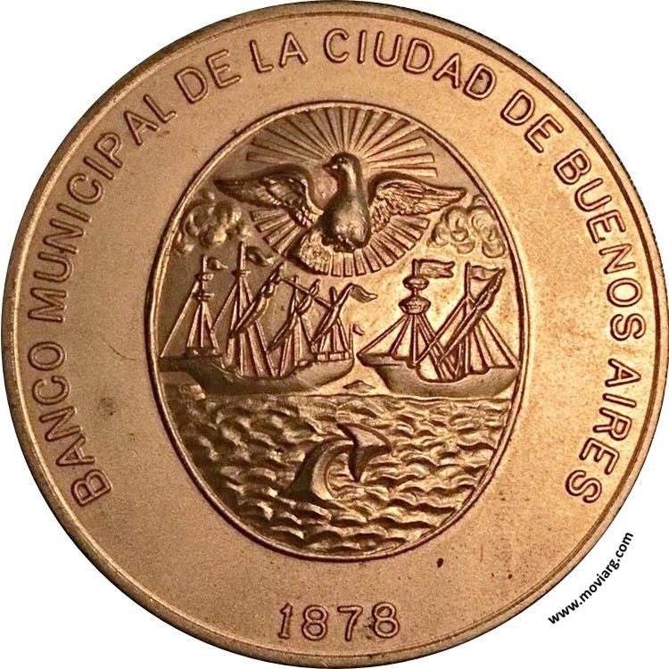 Anverso: BANCO MUNICIPAL DE LA CIUDAD DE BUENOS AIRES / 1878 Reverso: UN BANCO AL SERVICIO DE LA COMUNIDAD Referencia: | |