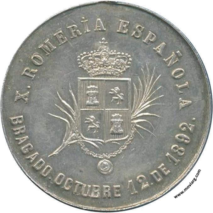 Anverso: IV. CENTENARIO DEL DESCUBRIMIENTO DE AMERICA. Firma: J. DOMINGO Reverso: X. ROMERÍA ESPAÑOLA / BRAGADO. OCTUBRE 12 DE 1892. Referencia: | |