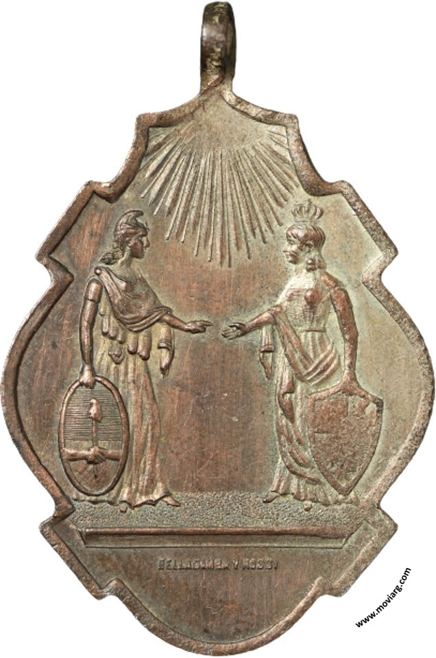 Anverso: Firma: BELLAGAMBA Y ROSSI Reverso: CONFRATERNIDAD / HISPANO ARGENTINA / GOYA / 25 DE MAYO 1900 Referencia: | |