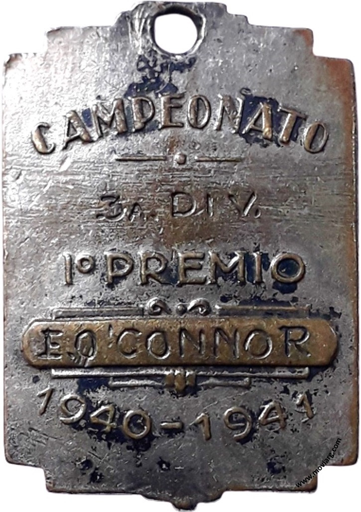 Colección MDS Anverso: Campo: LABBReverso: CAMPEONATO / [ 3A. DIV. ] / 1° PREMIO / [ E. O' CONNOR ] / 1940 - 1941 Referencia: | |