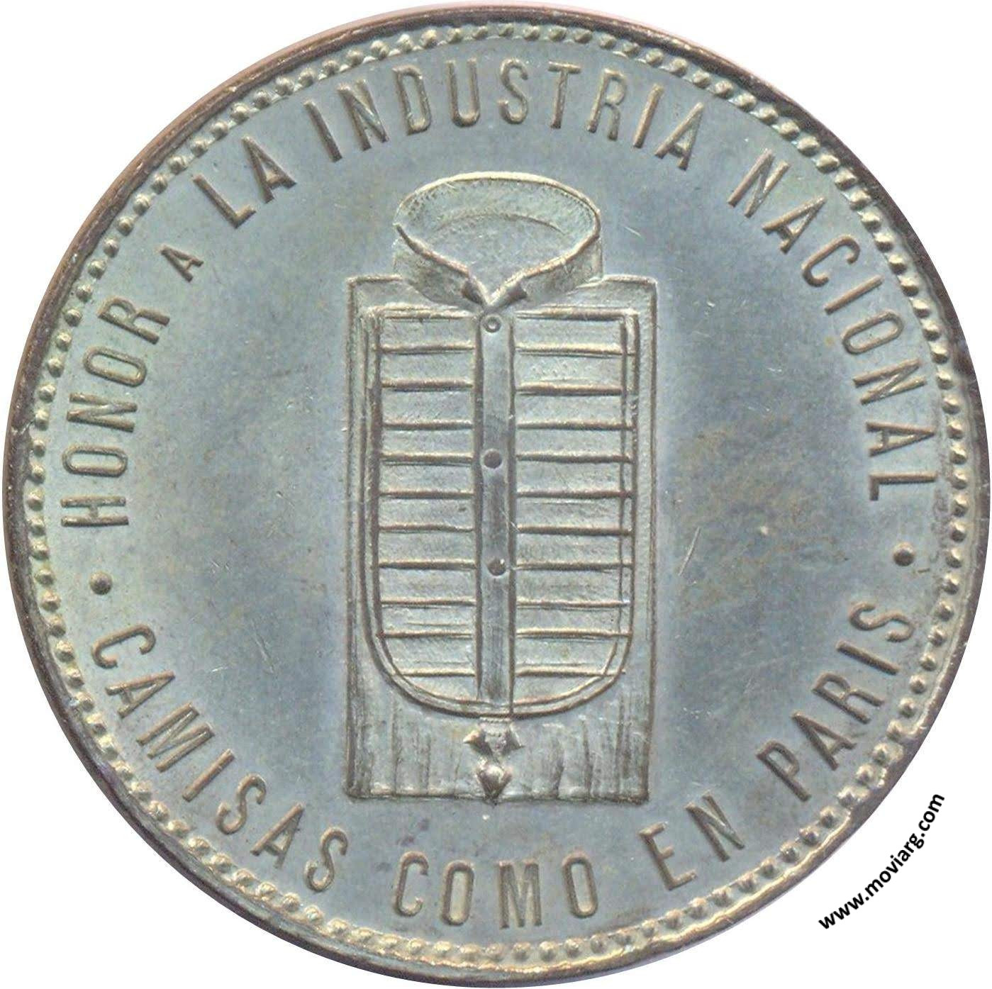Anverso: HONOR A LA INDUSTRIA NACIONAL / CAMISAS COMO EN PARIS Reverso: 10 MAYO 1893 / APERTURA / DE LA / GRAN FABRICA / DE CAMISAS / L. MORALES / MAIPÚ 67 / BUENOS AIRES Referencia: BURZIO-3440a | |