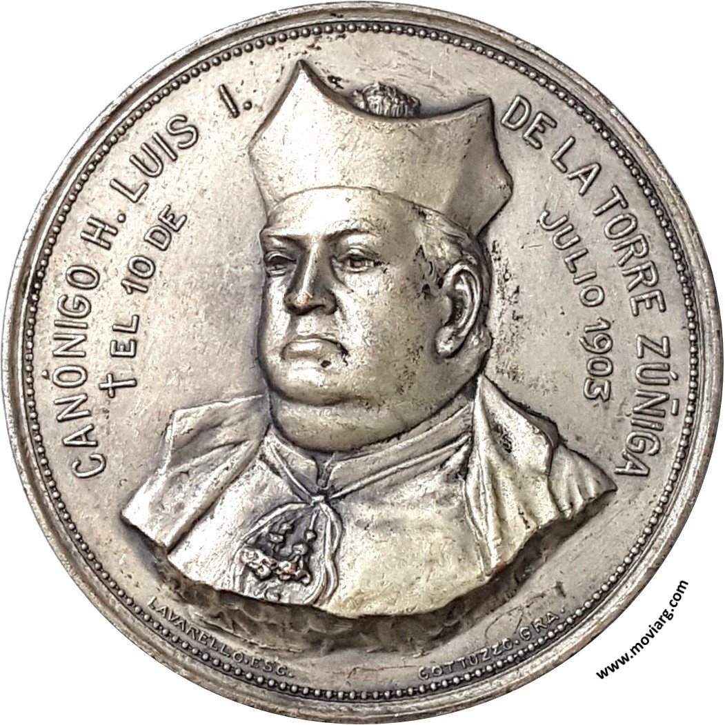 Anverso: CANÓNIGO H. LUIS I. / DE LA TORRE ZUÑICA / EL 10 DE / JULIO 1903. Firma: LAVARELLO ESC. GOTTUZZO GRA. Reverso: HOMENAJE DE SUS FELIGRESES DE LA PARROQUIA DE LA CONCEPCION / IN / MEMORIA / ÆTERNA / ERIT / JUSTUS. Firma: J. GOTTUZZO B. AIRES Referencia: | |