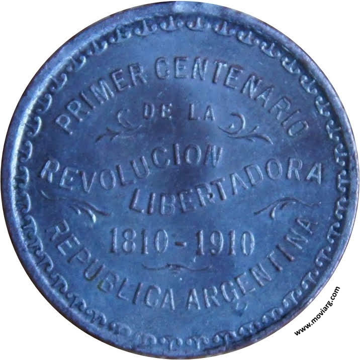 Anverso: AL GRAN PUEBLO ARGENTINO SALUD. Firma: A. BARÉS Reverso: PRIMER CENTENARIO / DE LA / REVOLUCION / LIBERTADORA / 1810 - 1910 / REPUBLICA ARGENTINA Referencia: | |