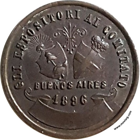 | Año: 1896 Exposiciones Metal: Cobre - Peso: 8.8gr - Módulo: 28mm Grabador: Luis Valsecchi | |