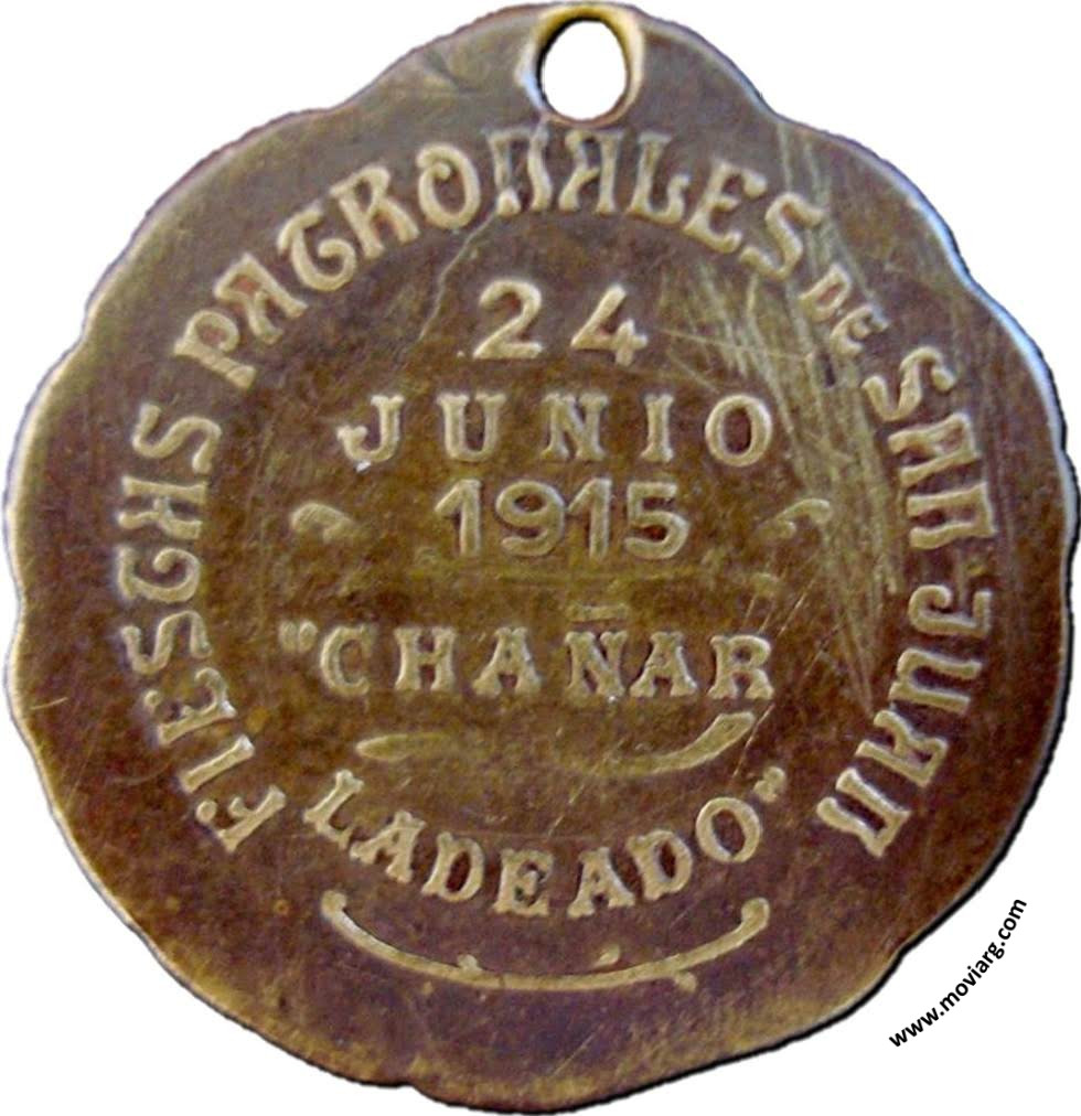 Anverso: Reverso: FIESTAS PATRONALES DE SAN JUAN / 24 / JUNIO / 1915 / " CHAÑAR / LADEADO " Referencia: | |
