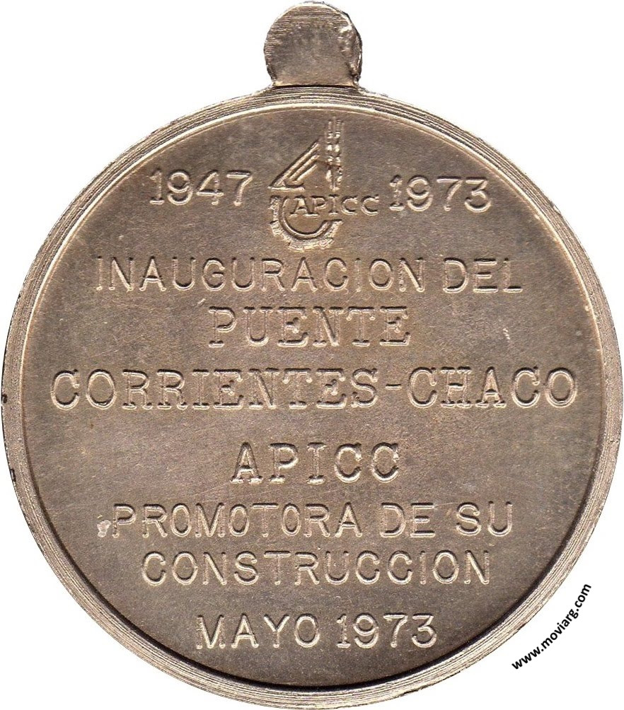 Colección Carlos Bravo Anverso:Reverso: 1947 / 1973 / INAUGURACION DEL / PUENTE / CORRIENTES - CHACO / APICC / PROMOTORA DE SU / CONSTRUCCION / MAYO 1973 Referencia: | |