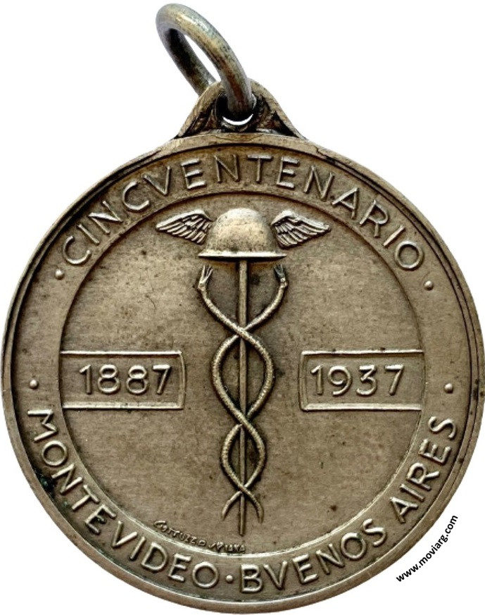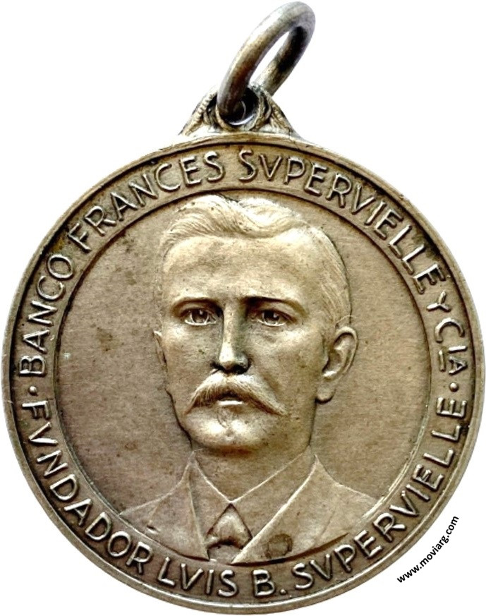 Anverso: BANCO FRANCES SUPERVIELLE Y CIA. / FUNDADOR LUIS. B. SUPERVIELLE Reverso: CINCUENTENARIO / MONTEVIDEO · BUENOS AIRES / 1887 / 1937. Firma: GOTTUZZO Y PIANA Referencia: | |