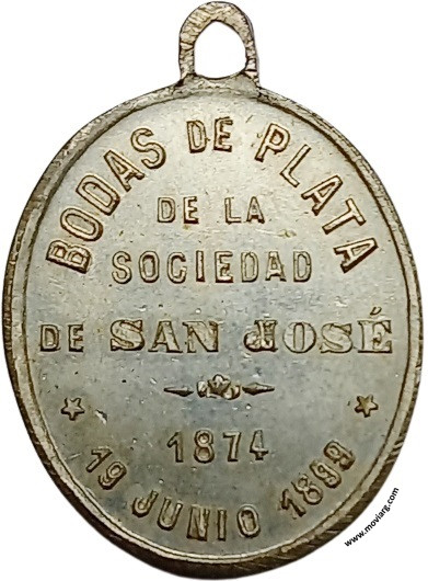 Colección MDS Anverso: EGO · SVM · IOSEPHReverso: BODAS DE PLATA / DE LA / SOCIEDAD / DE SAN JOSÉ / 1874 / 19 JUNIO 1899 Referencia: | |