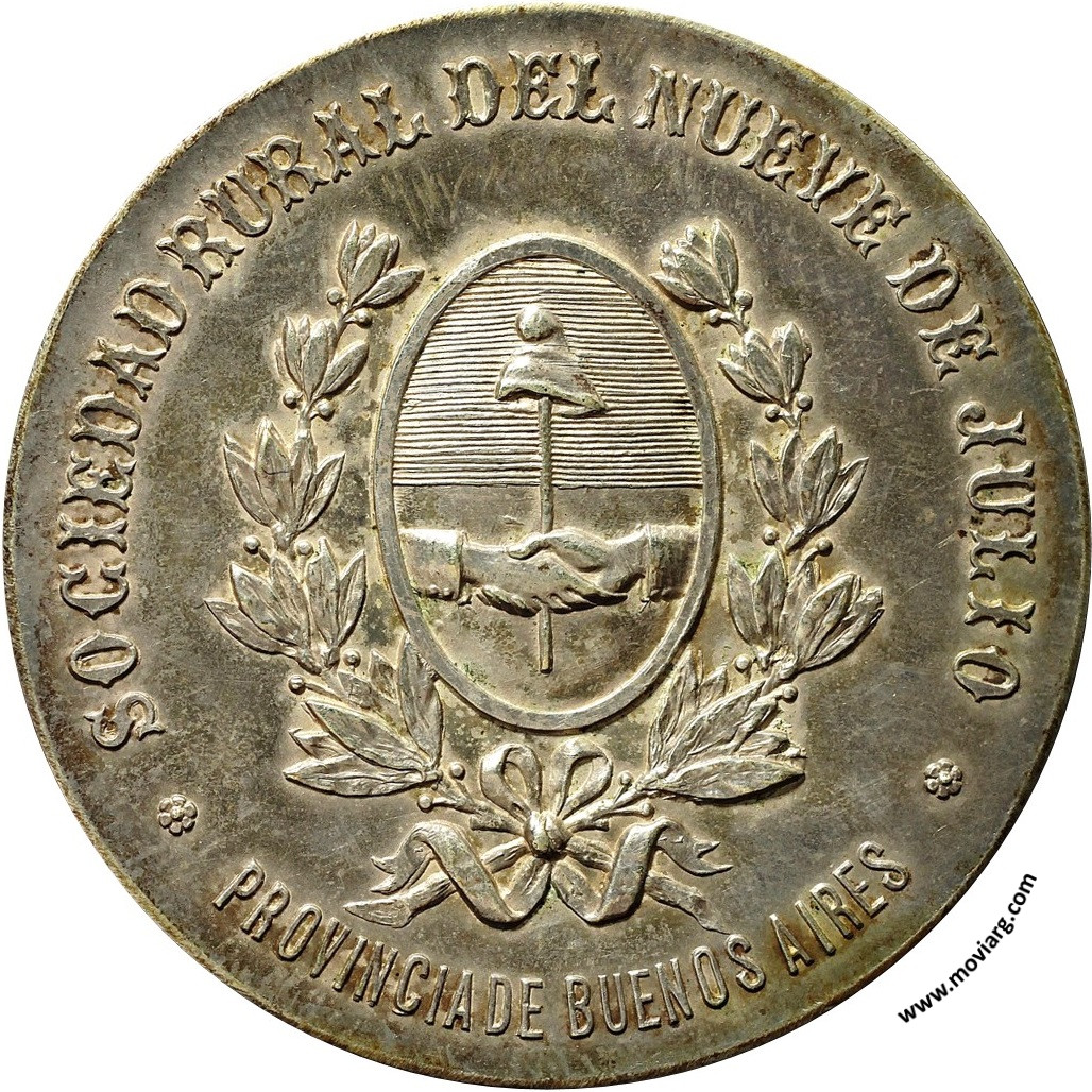 Anverso: EXPOSICION FERIA 1902 / [ 1R. ] PREMIO. Firma: BELLAGAMBA Y ROSSI Reverso: SOCIEDAD RURAL DEL NUEVE DE JULIO / PROVINCIA DE BUENOS AIRES Canto: Liso. NIKEL Referencia: | |