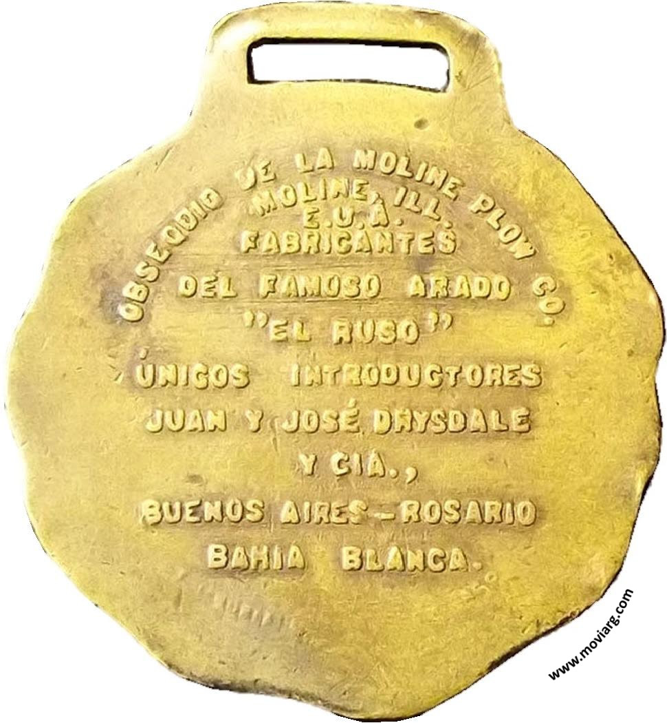 Anverso: Campo: TRADEMARK / 1918 Reverso: OBSEQUIO DE LA MOLINE PLOW CO. / MOLINE, ILL. / E.U.A. / FABRICANTES / DEL FAMOSO ARADO / " EL RUSO " / ÚNICOS INTRODUCTORES / JUAN Y JOSÉ DRYSDALE / Y CIA., / BUENOS AIRES - ROSARIO / BAHIA BLANCA. Referencia: | |