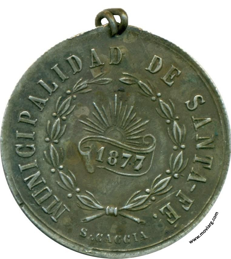 Anverso: HONOR AL MÉRITO Reverso: MUNICIPALIDAD DE SANTA-FE. Firma: S .·. CACCIA. Campo: 1877 (3) Referencia: | |