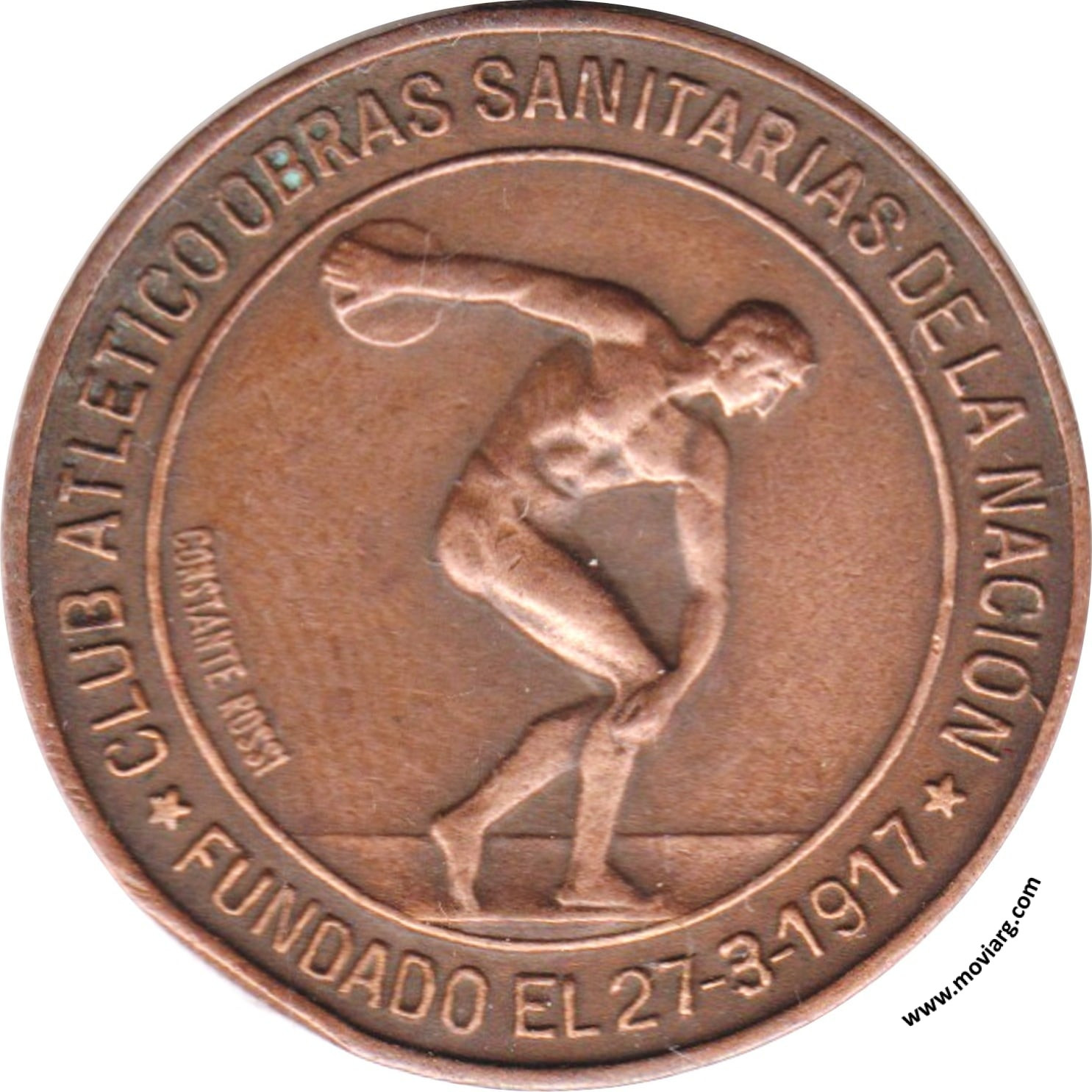 Anverso: CLUB ATLETICO OBRAS SANITARIAS DE LA NACIÓN / FUNDADO EL 27 - 3 - 1917. Firma: CONSTANTE ROSSI Reverso: CONMEMORACIÓN XV° ANIVERSARIO / 1917 / 27 DE MARZO / 1932 Referencia: | |