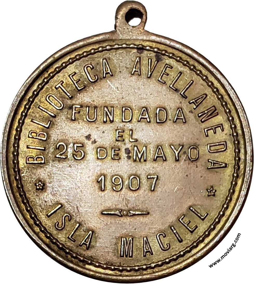 Anverso: Reverso: BIBLIOTECA AVELLANEDA / ISLA MACIEL / FUNDADA / EL / 25 DE MAYO / 1907 Referencia: | |