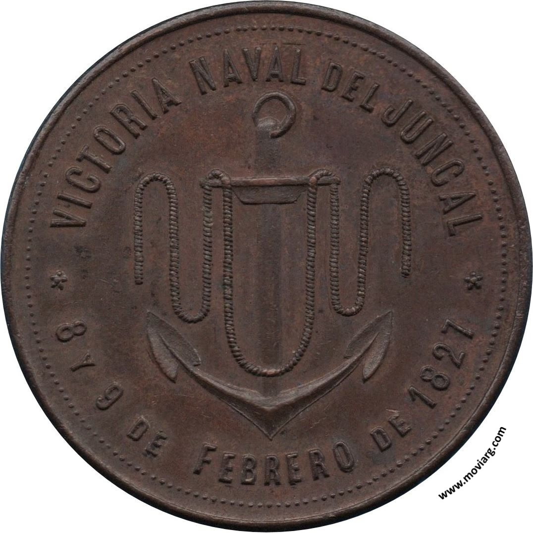 Anverso: VICTORIA NAVAL DEL JUNCAL / 8 Y 9 FEBRERO DE 1827 Reverso: HOMENAJE / AL / CAPITAN DE NAVIO / ENRIQUE SINCLAIR / UNICO SOBREVIVIENTE / EN / 1899 Referencia: | |
