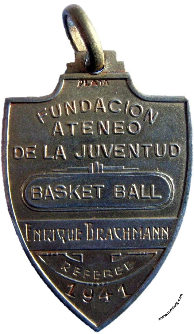 Anverso: Campo: F / A / J Reverso: [ PLATA ] / FUNDACION / ATENEO / DE LA JUVENTUD / BASKET BALL / [ ENRIQUE BRACHMANN ] / [ REFEREE ] / [ 1941 ] Referencia: | |