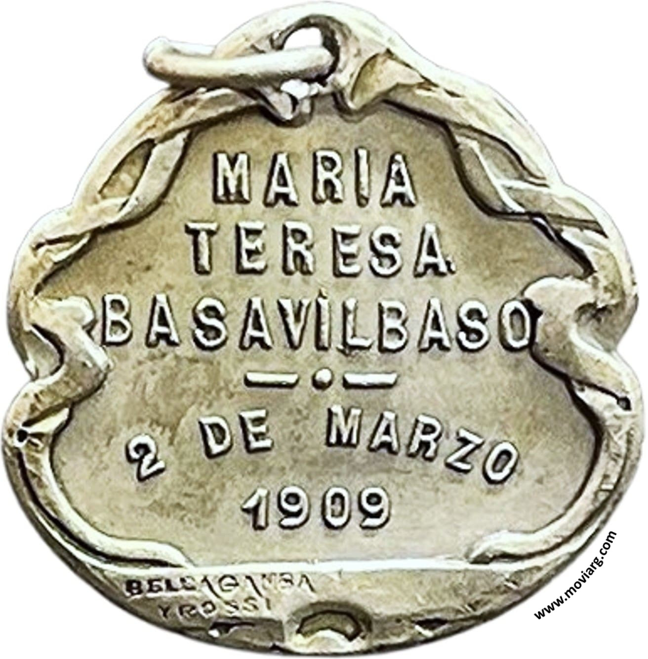 Anverso: SAN JUAN. Firma: BELLAGAMBA / Y ROSSI Reverso: MARIA / TERESA / BASAVILBASO / 2 DE MARZO / 1909. Firma: BELLAGAMBA / Y ROSSI Canto: Liso. PLATA Referencia: | |