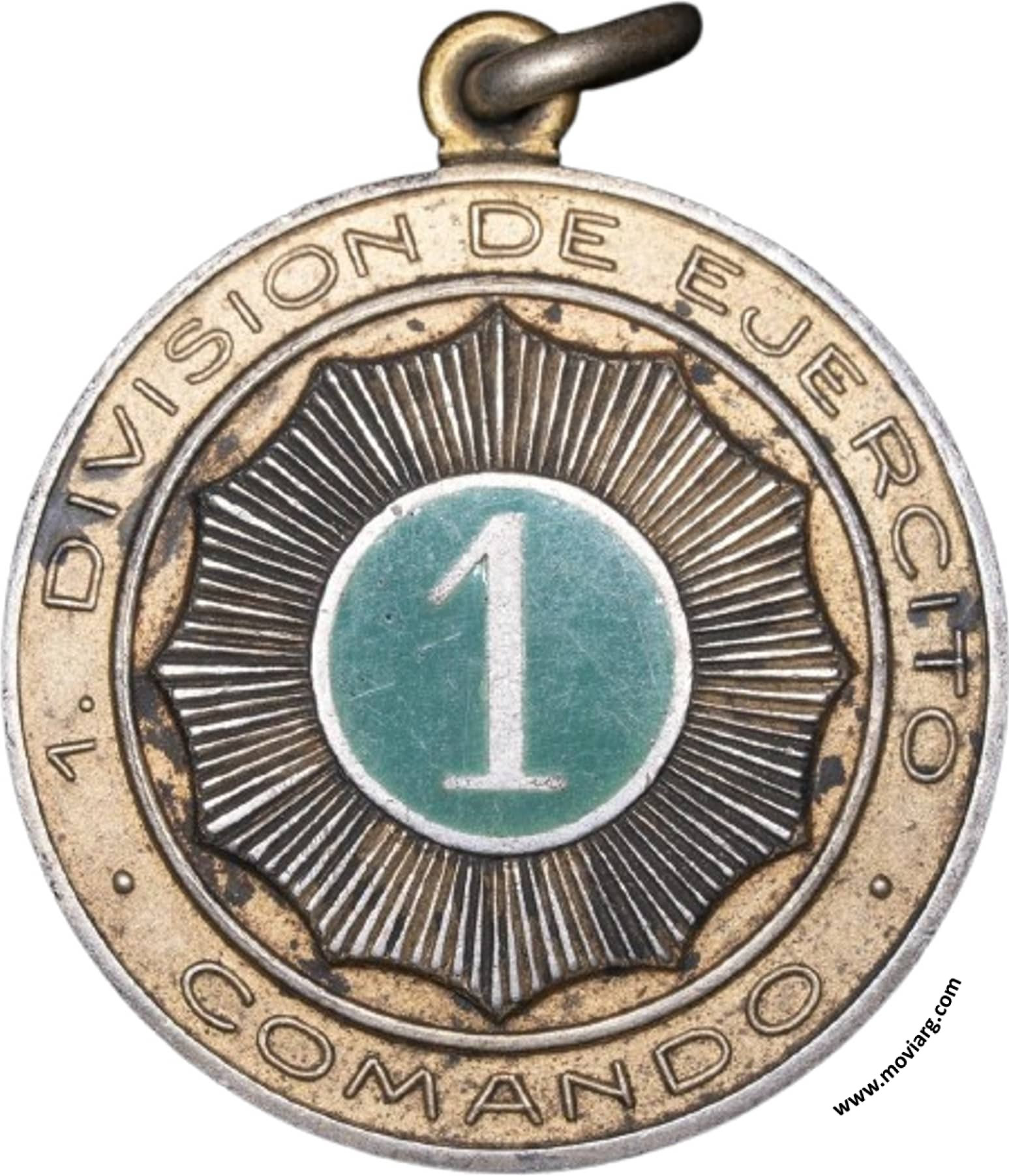 Anverso: 1. DIVISION DE EJERCITO / COMANDO. Campo: 1 Reverso: AL / [ GRAL. DE BG. ] / [ D. ADOLFO S. ESPINDOLA ] / RECUERDO / DE SUS CAMARADAS / [ 1941 - 1942 ] Referencia: | |