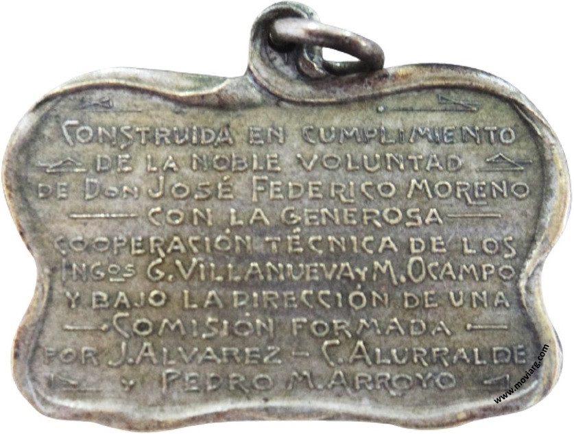 Anverso: ESCUELA JOSÉ FEDERICO MORENO / 24 DE MAYO DE 1911 Reverso: CONSTRUIDA EN CUMPLIMIENTO / DE LA NOBLE VOLUNTAD / DE DON JOSÉ FEDERICO MORENO / CON LA GENEROSA / COOPERACIÓN TÉCNICA DE LOS / INGOS. G. VILLANUEVA Y M. OCAMPO / Y BAJO LA DIRECCIÓN DE UNA / COMISIÓN FORMADA / POR J. ALVAREZ - C. ALURRALDE / Y PEDRO M. ARROYO Referencia: | |