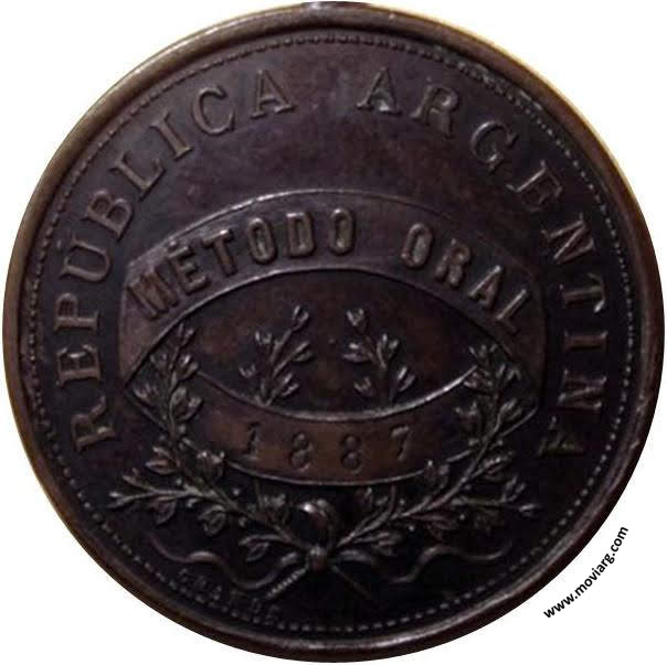 Anverso: REPÚBLICA ARGENTINA / MÉTODO ORAL / 1887. Firma: GRANDE Reverso: INSTITUTO GRAL. BELGRANO DE SORDO-MUDOS Y CRETINOS / PRIMEROS / EXAMENES / EN LA / AMÉRICA / DEL SUD Referencia: FERRARI-138 (RG) | |