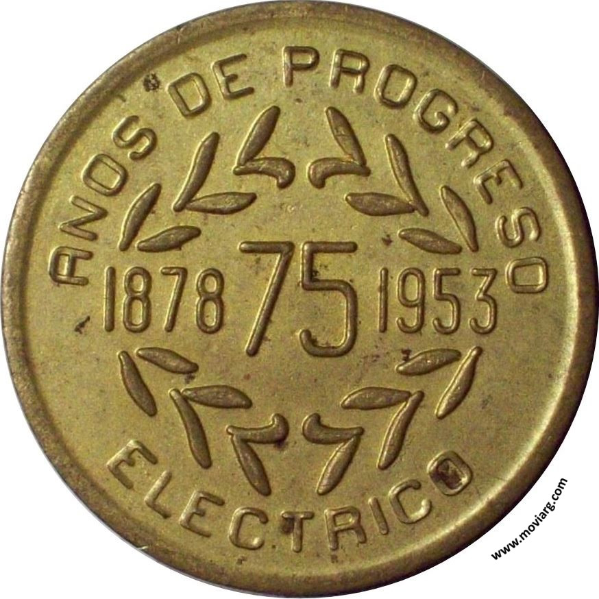 Anverso: GE Reverso: ANOS (sic) DE PROGRESO / ELECTRICO / 1878 75 1953 Referencia: | |