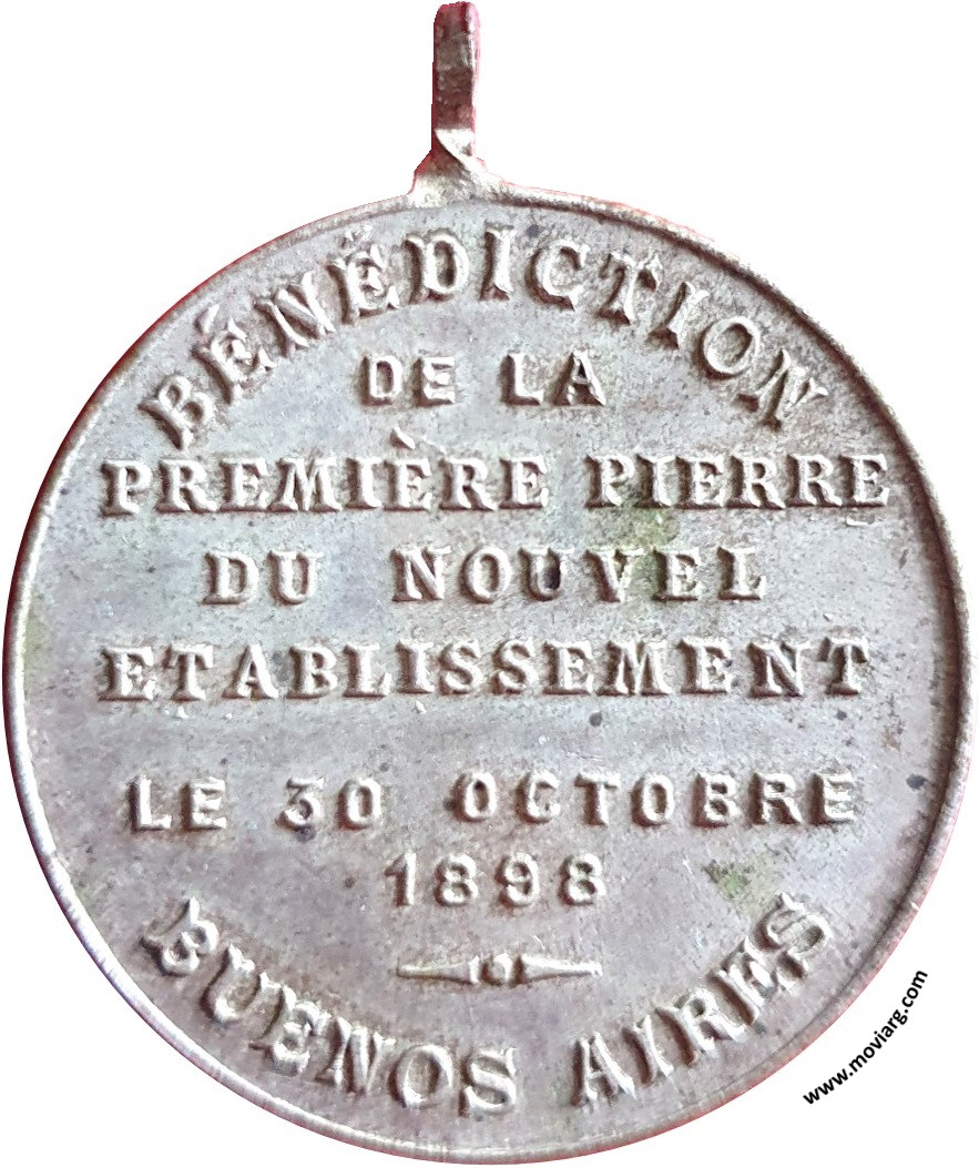 Anverso: ORPHELINAT FRANÇAIS / 1872 - 1898 Reverso: BÉNÉDICTION / DE LA / PREMIÈRE PIERRE / DU NOUVEL / ETABLISSEMENT / LE 30 OCTOBRE / 1898 / BUENOS AIRES Referencia: | |
