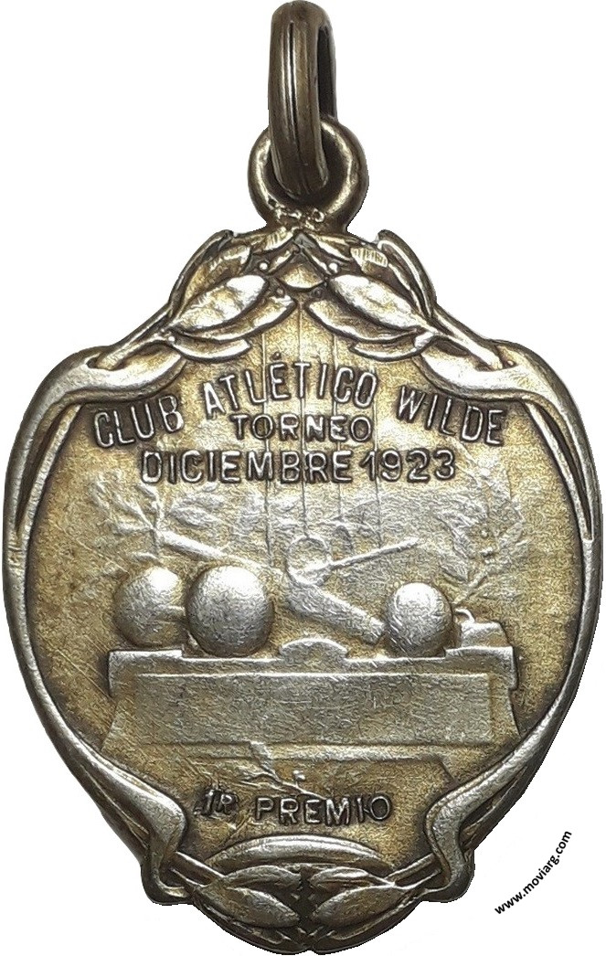 Colección MDS Anverso: Firma: C. Y AF. ROSSIReverso: CLUB ATLÉTICO WILDE / TORNEO / DICIEMBRE 1923 / 1R PREMIO Canto: Liso. PLATA Referencia: | |