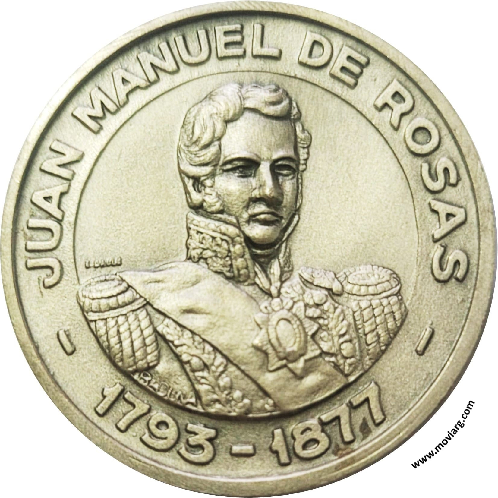 Anverso: JUAN MANUEL DE ROSAS / 1793 - 1877. Firma: O. GALLO / BADUNA (??) Reverso: CONMEMORACION DE LA GESTA / DE / OBLIGADO / SAN NICOLAS / HOMENAJE DEL PUEBLO / 20 - XI - 1994 / I.N.H. / AVDA. COSTANERA / BR. GRAL. JUAN M. DE ROSAS Referencia: | |