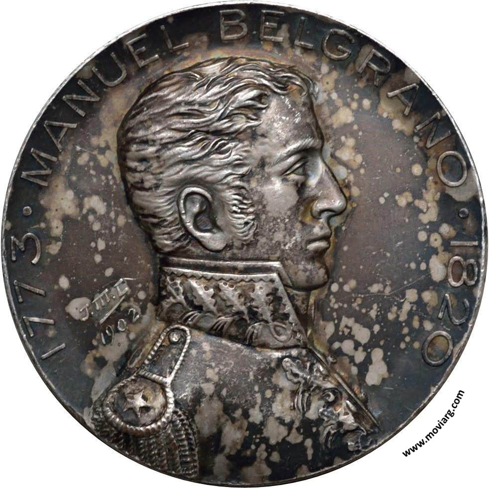 Anverso: 1773 MANUEL BELGRANO 1820. Firma: J.M.L. / 1902 Reverso: PRECURSOR Y FUNDADOR / DE LA INDEPENDENCIA ARGENTINA / VENCEDOR EN TUCUMAN Y SALTA / EL PUEBLO Y EL GOBIERNO / INAUGURAN EL MAUSOLEO / A SU INMORTAL MEMORIA / 20 DE JUNIO DE 1903 Referencia: | |