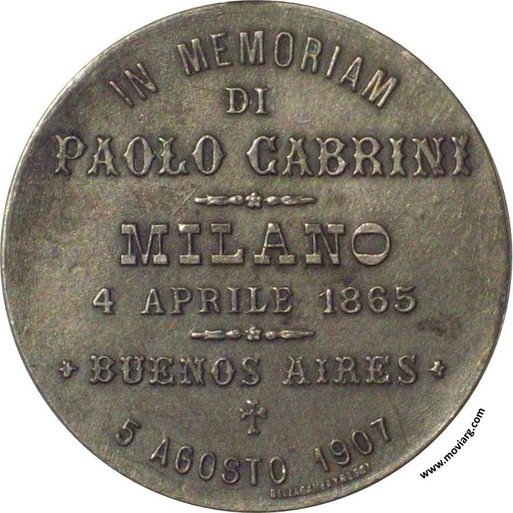Anverso: Reverso: IN MEMORIAM / DI / PAOLO CABRINI / MILANO / 4 APRILE 1865 / BUENOS AIRES / 5 AGOSTO 1907. Firma: BELLAGAMBA Y ROSSI Referencia: | |