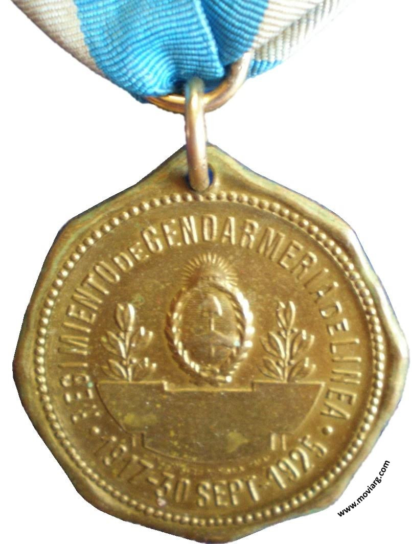 Anverso: EJERCITO ARGENTINO / CIVILIZACION - PROGRESO - NACIONALISMO Reverso: REGIMIENTO DE GENDARMERIA DE LINEA / 1917 - 30 SEPT - 1925. Firma: PASTORINO Y SALA Referencia: | |