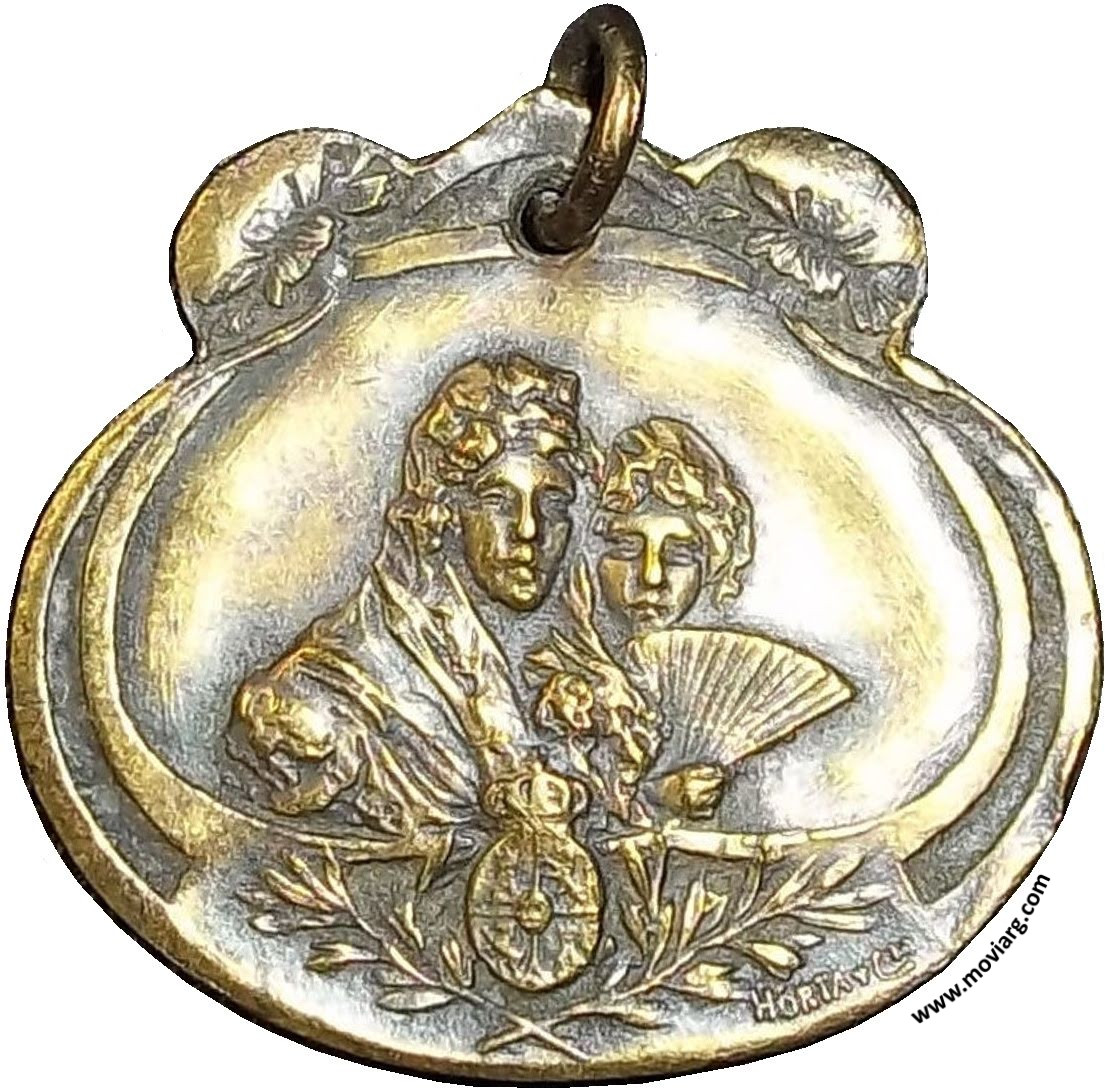 | Año: 1907 Romerías Metal: Bronce - Peso: 10.3gr - Módulo: 28x30mm - Rotación: 12hrs Grabador: Horta y Cia | |