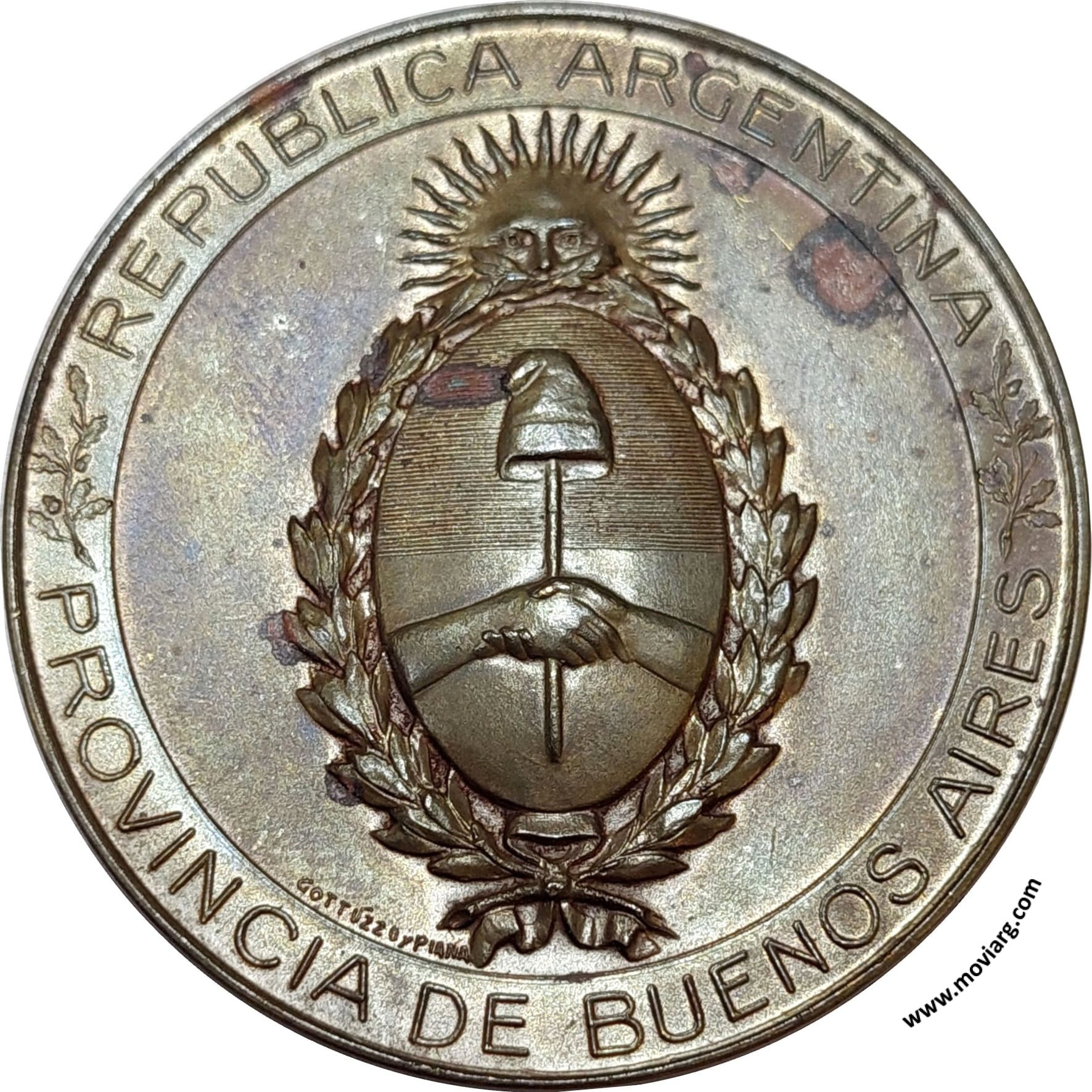 Nota: El metal, peso, módulo y espesor publicado pertenecen a la pieza ilustrada en este sitio web, esto no garantiza que piezas de terceros posean las mismas características o sean del mismo metal que el aquí reportado dado que no todas las variantes de metal han sido catalogadas. Los derechos de propiedad intelectual de las imágenes aquí presentes pertenecen a sus respectivos autores. Si bien se solicita permiso de todos los propietarios intelectuales de las imágenes para reproducirlas en este sitio web, en caso de apreciar algún error u omisión, se ruega comunicarse a la brevedad para resolverlo vía email a moviarg.web@gmail.com.